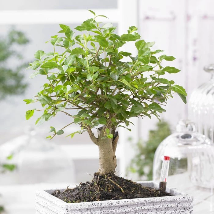 Ce Bonsaï Ligustrum chinois est vigoureux et fort. Élevé depuis plus de 7 ans il décorera votre maison ou votre jardin avec style! Il a grandi dans un pot en céramique de 15cm et il est de plus très facile à entretenir tel un bel arbre vigoureux. C’est un merveilleux cadeau pour tout les amoureux de la nature.•L’article est fourni sans coupelle en céramique.