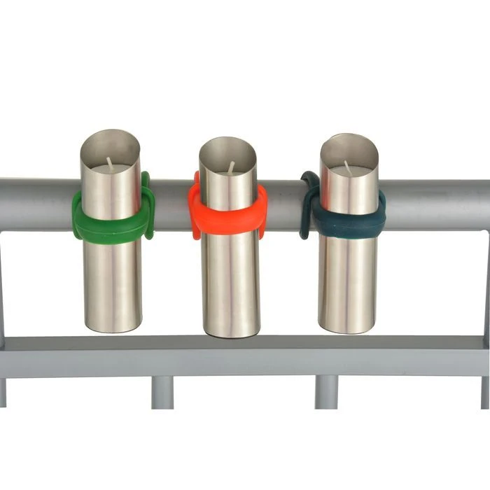 Pratiques, ces portes bougies chauffe-plat sont en acier inoxydable avec attache en silicone pour balustrade de balcon.
