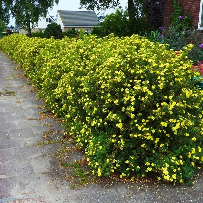 La Potentilla fruticosa est un très bel arbuste dense de croissance pour les bordures ou pour recouvrir un espace vide du jardin. Son feuillage décoratif est vert avec des reflet argentés. A partir de la fin du printemps son feuillage est décorée de fleurs dorées et brillantes. Pour une haie dense 3 à 4 plants seront nécessaire par mètre. La croissance moyenne par an est d’environ 15 à 25 cm. Cet arbuste est idéal pour les endroits venteux.